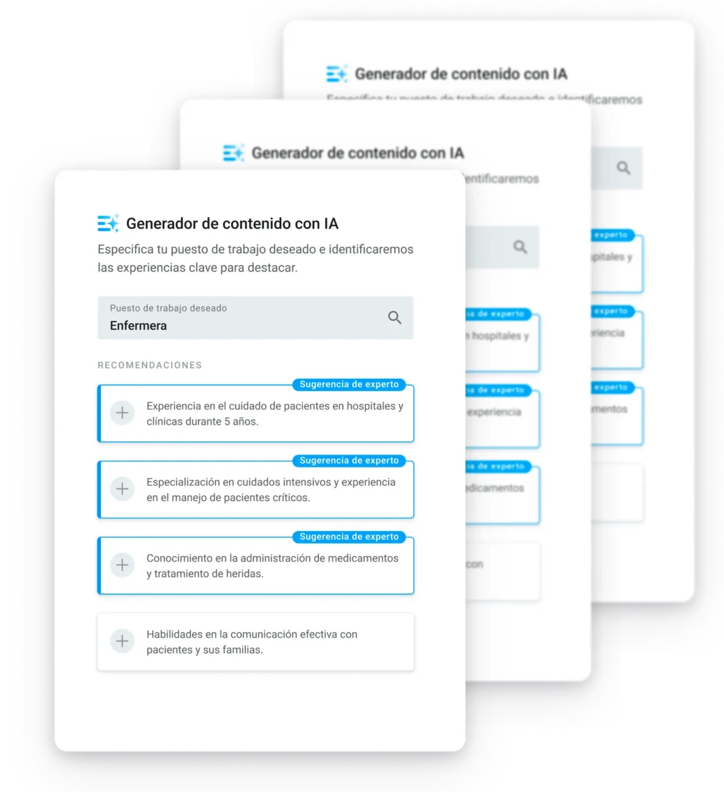 Our content assistant now covers 300 professions in English, 200 in Spanish, Italian, and French, making it a breeze to add relevant, professional content to your CV.